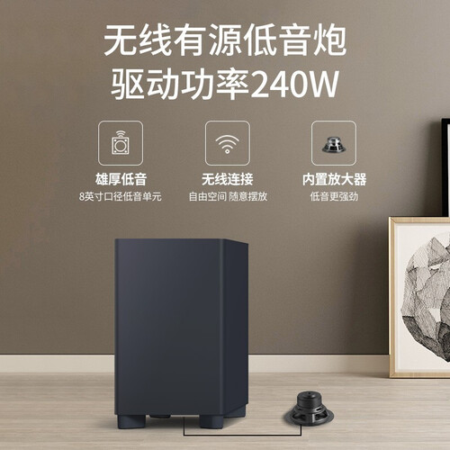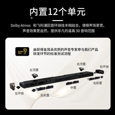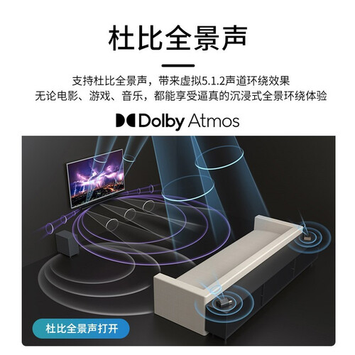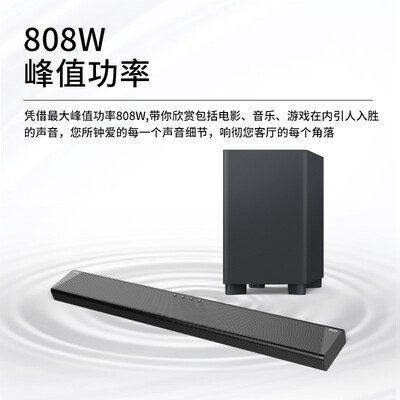 支持杜比全景声,能够实现虚拟的5.1.2声道效果,可以营造沉浸式的环绕体验。大功率808瓦,不会错过细节。
