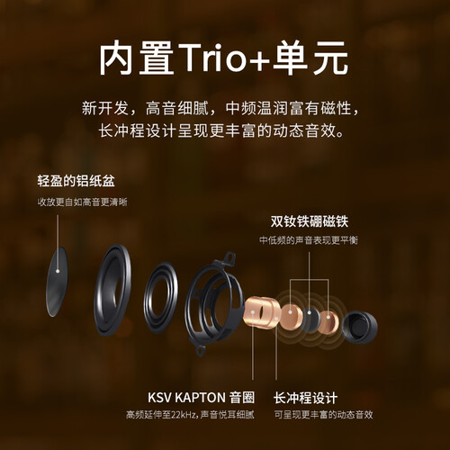 极具怀旧色彩机身,充满了文艺的气息,搭配的全频单元,有低音共振膜,人声中频表现舒适而温暖,而且久听不累。
