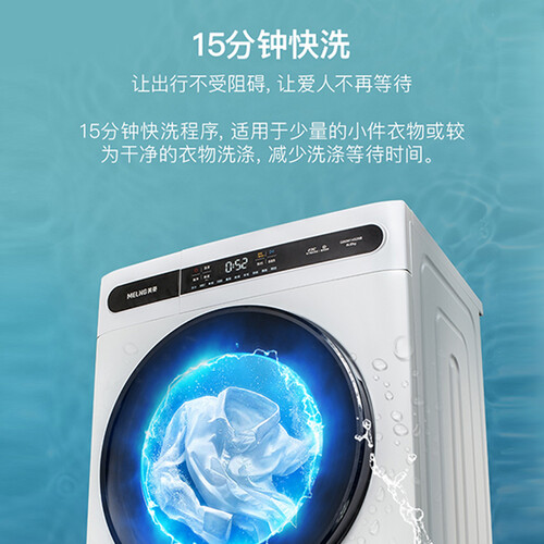 一键智洗,一级能效,运行稳定降低能耗,省电又省心。15分钟快洗,适用于少量色小件衣物,减少洗涤等待时间。