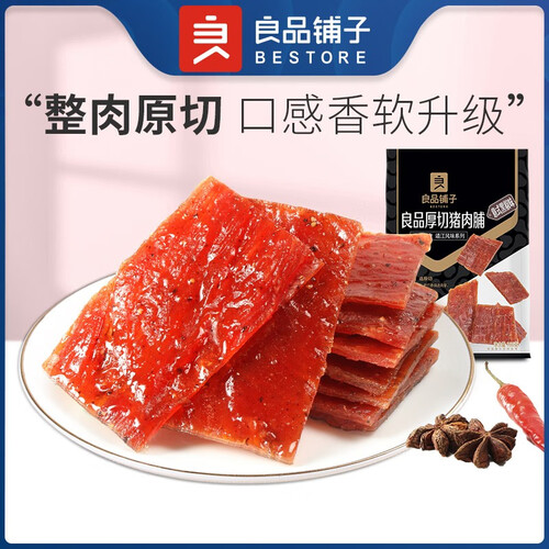 黑椒味猪肉脯,肉质紧实劲道,独特的黑椒味,香辣味美。传统方式制作,安全健康,适合作为日常的休闲零食。