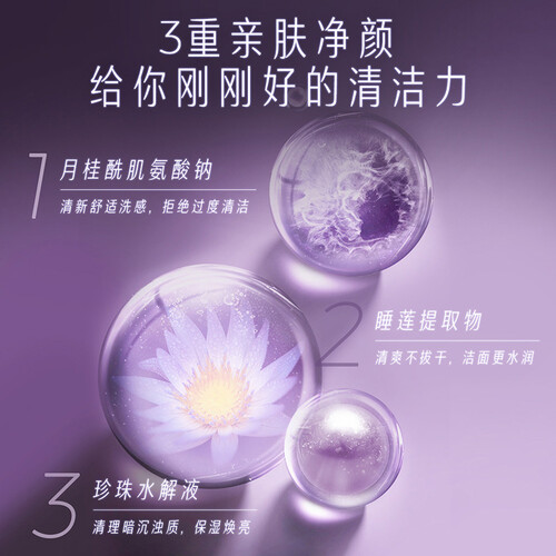 蕴含多重保湿成分,水润舒适呵护,让肌肤更白皙自然。拥有绵密泡沫,可以轻柔按摩舒缓,让洗后的肌肤不紧绷。