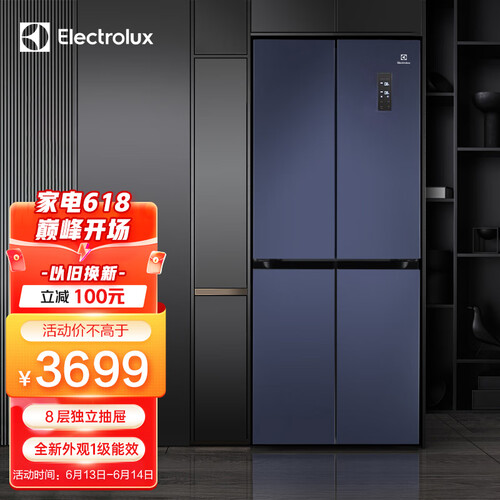 伊莱克斯 除味对开门冰箱