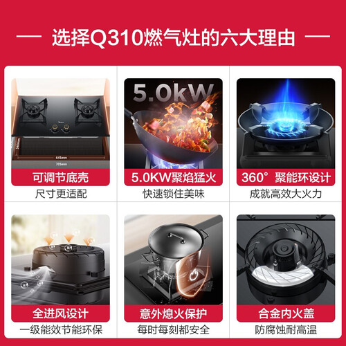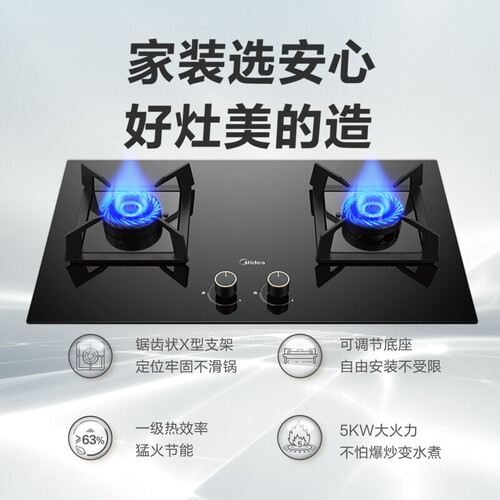 具有钢化玻璃面板,油污轻擦即可去除,远离难清理的烦恼。搭配X型防滑锅架,烹饪时锅具更稳定,避免发生意外危险。