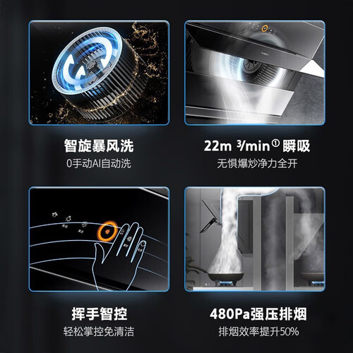 50分贝轻感智静模式,吸烟时低音运行,不吵家人休息。450Pa的强劲排烟,提升53%的排烟效率,节约排除时间。