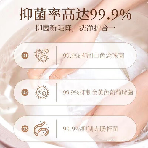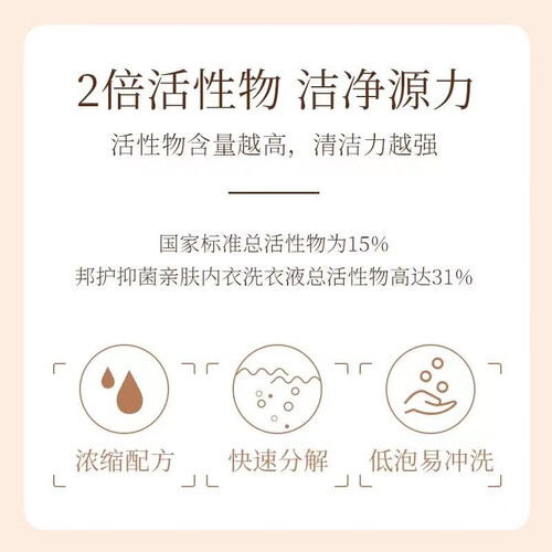 此款洗衣液含有天然植物精油,滋养衣物,增加衣物亲肤性;无需浸泡,快速洗净衣物,带来省时省心的洁衣体验。