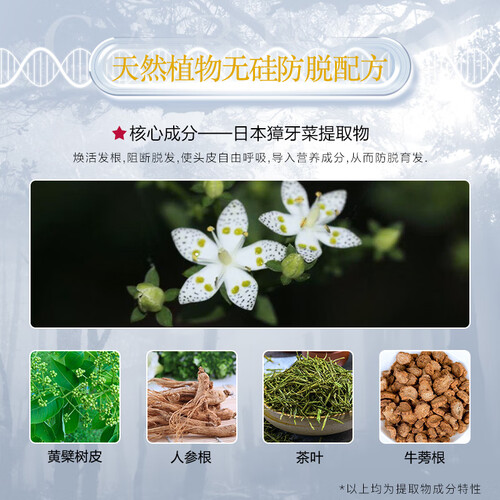 天然植物萃取成分,坚持使用,可有效防脱育发,维持水油平衡。科技感满满的瓶身,简洁大气,使用也方便。