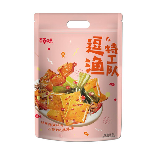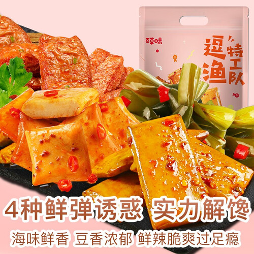 内含4种爆款休闲零食,弹嫩鲜美的鱼豆腐与厚实爽脆的海带结搭配,能轻松满足味蕾。同时荤素搭配,口感均衡,是假日送礼佳品。