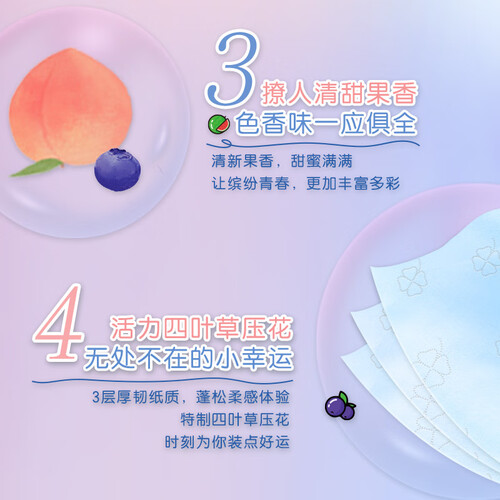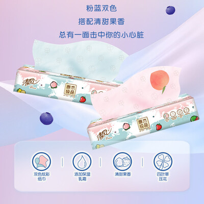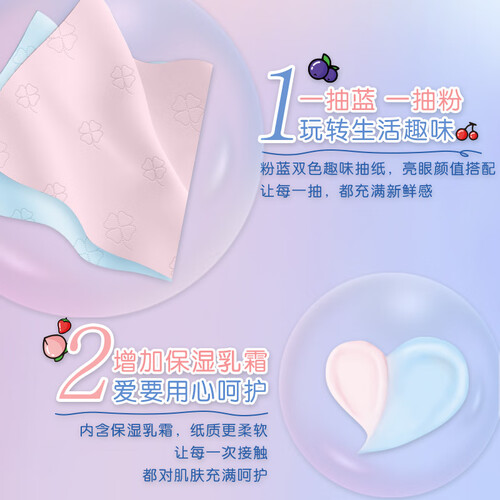 富含乳霜保湿因子,质地更柔润顺滑,温润洁净滋润保持不干燥。粉蓝双色搭配,充满青春活力的气息,高颜值让你爱上清洁用纸。