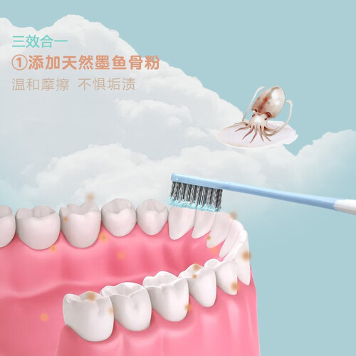 特别添加了天然墨鱼骨粉,让清洁来得更温和一些,去渍不伤牙釉质。珍珠粉弦白因子加持,让牙齿白得更自然。
