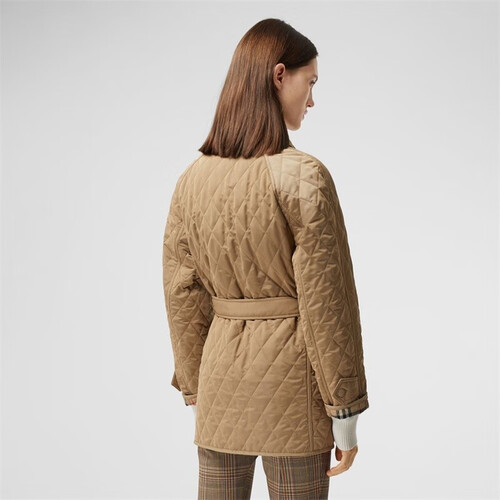 采用菱形绗缝工艺,针脚细腻,彰显精湛做工。搭载可调节腰带,时尚有型,松紧可以灵活调整。