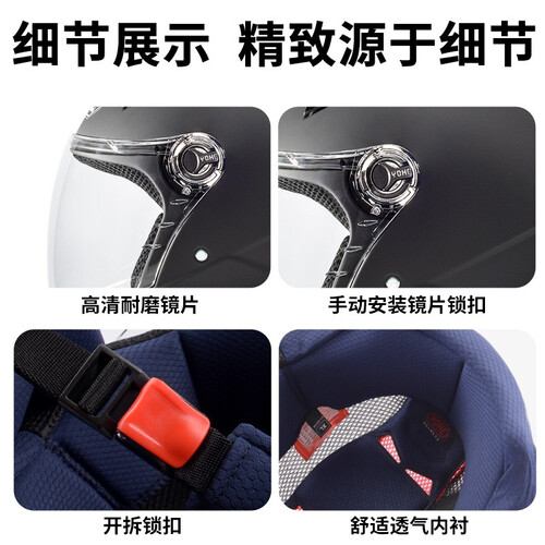 采用ABS耐摔的材质,质地坚硬没能够覆盖头部的安全区,避免头部受到伤害。选用高清的镜片,透光好,行车更安全。