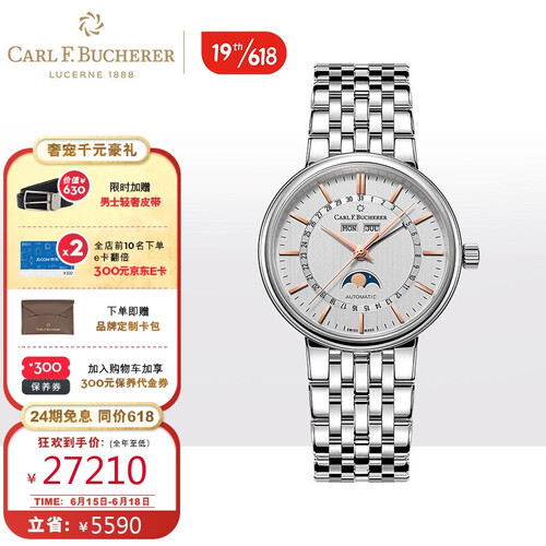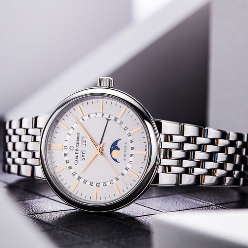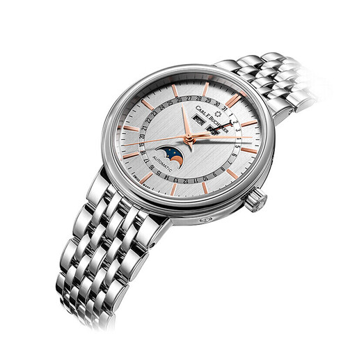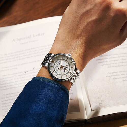 带有日期、星期、月份和月相显示功能,可以更加精准的把控时间,满足更多使用需求。质感光滑细腻的金属链带,结实牢固。