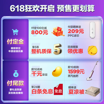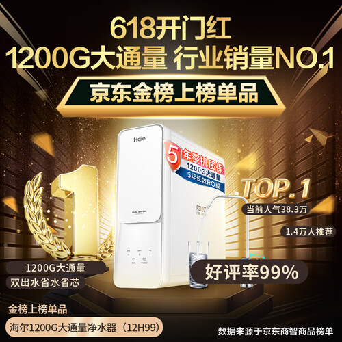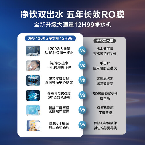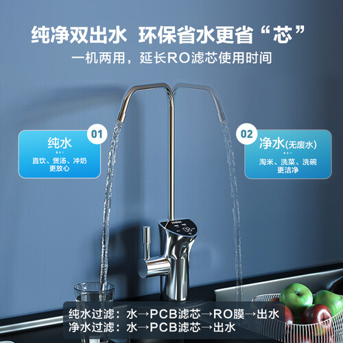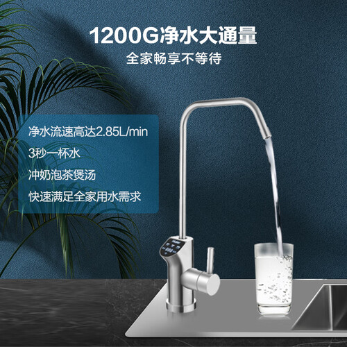1200G大通量净水器,同时满足多人用水需求,安全好水不等待。纯净双出水设计,无废水不耗电,有效延长RO膜使用寿命。
