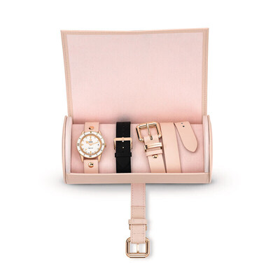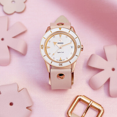 粉色调设计,充满甜美淑女风,造型精巧有个性,彰显女性魅力。双面防眩目表镜,不受光线约束,随时查看时间。