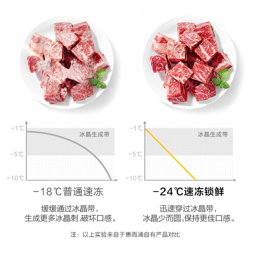 惠而浦采用冷链运输级别零下24度速冻锁鲜,较短时间内将食物冻透,保持食物新鲜。