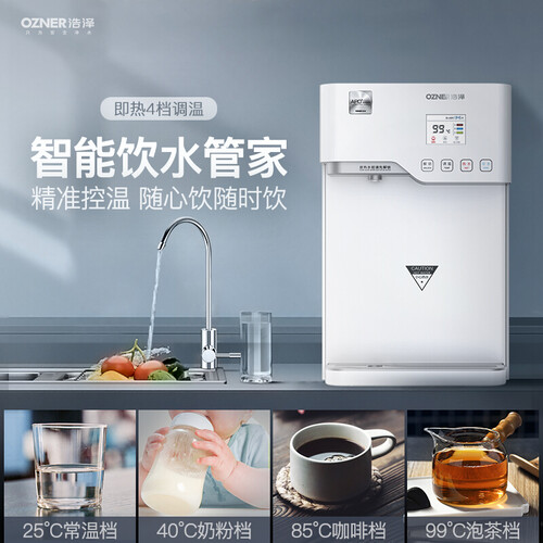 冷热双出水结构处理,应对生活用水需求,进一步提升实用性。支持多段温度控制,灵活调节加热温度,冲泡更省心。