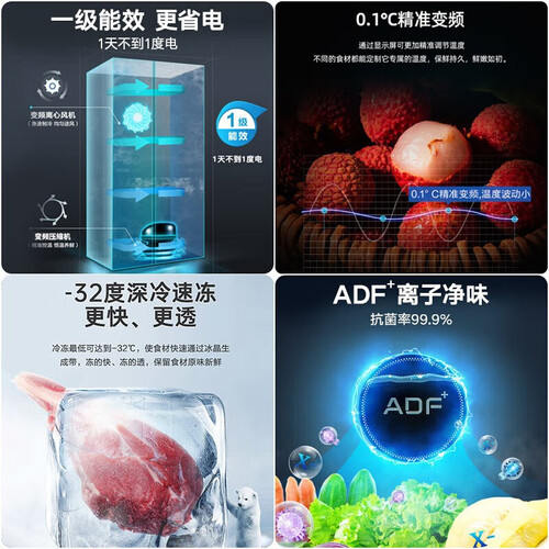 AC+净味除菌,维持箱内无菌环境,且不易生异味。设置分区存储,满足每类食材不同的储存环境。