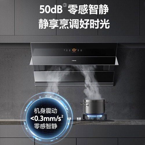 采用AI智旋暴风洗功能,帮助清洁残留油污,避免异味产生,快速焕新烟机。50dB低噪运行模式,享受静谧时光。