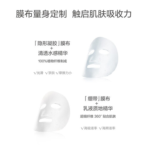 采用优质隐形凝胶膜布,质感清透,带来更多精华。添加马齿觅植萃,山茶花植萃等成分,净化修护肌肤,更显亮白。