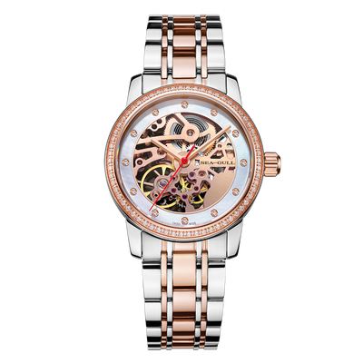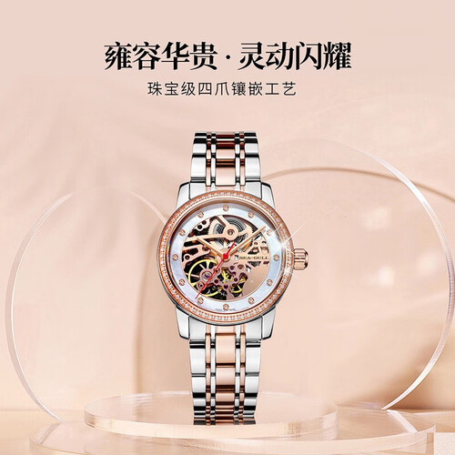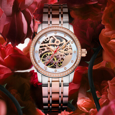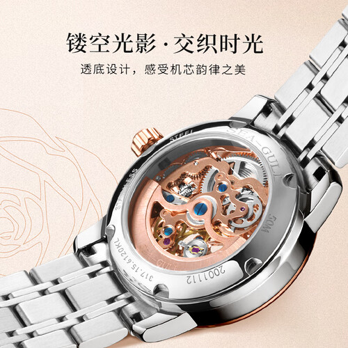 天然贝母的表盘,组合精致的镂空设计,光华流转晶莹闪耀,很有不俗格调魅力。螺纹表冠的设计,易于你校准时间,凸显细节品质。