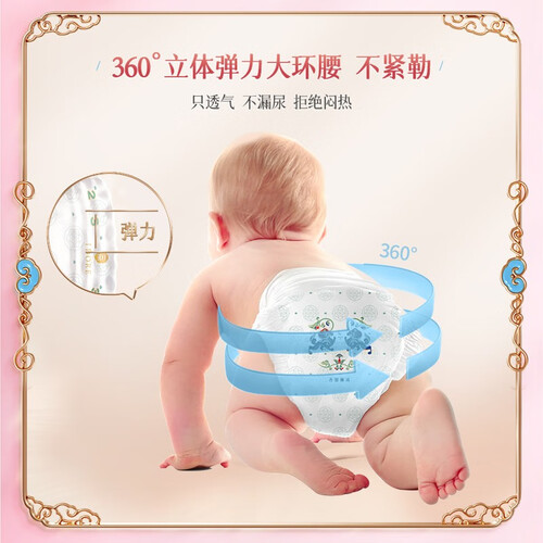 拥有1000万呼吸微孔,能够快速排出湿气,保持宝宝屁屁清爽舒适。360°立体弹力大环腰,舒适不紧勒,宝宝更爱穿。