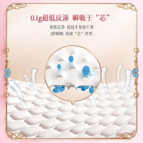 具有0.1g超低反渗率,裤面长久干爽,降低宝贝臀部红痒。选用0.016mm极细纤维,质地柔滑亲肤,穿着不产生摩擦不适感。