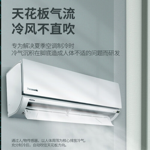 内置品牌原装压缩机,性能强劲,运行稳定,搭配智能变频系统,让室温均匀少波动,节能又舒适。天花板气流设计,冷风不直吹人体,呵护健康。