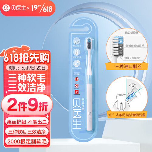 清新的配色设计,令人一见倾心,带来快乐的好心情。选用优质刷丝,轻柔带走牙缝中的食物残渣,不会损伤牙齿。