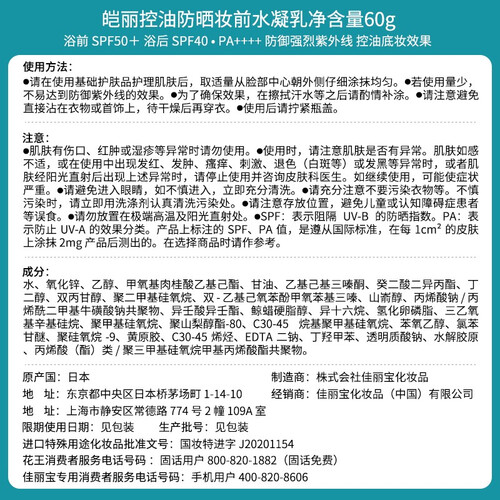 皑丽 清爽控油防晒霜