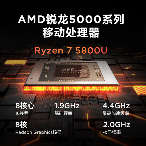 采用AMD锐龙7 5800U移动处理器,核显频率高,加载速度快。配备窄边框屏幕,经过DC调光处理,减少闪烁。