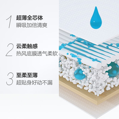 全新一代酷薄芯体,舒适透气,轻薄有型。搭载热风工艺底膜,穿着时减少与宝宝肌肤的摩擦,助力健康成长。