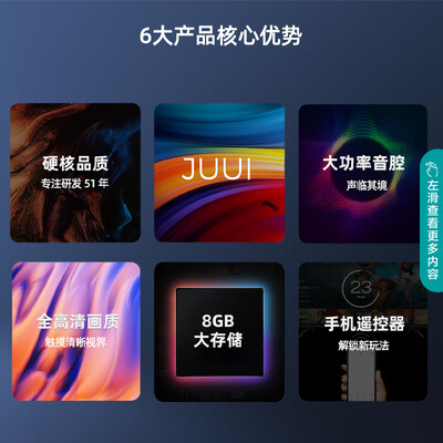 搭载42英寸高分辨率屏幕,画面细腻饱满,观看清晰。内含大功率音腔,可做到更好的音质体验,如身临其境。