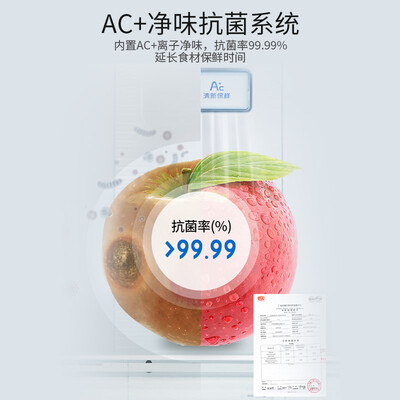 中间仓可根据需求自定义调节储存温度,避免浪费。内置AC+离子净味,可延长食物保鲜时间。