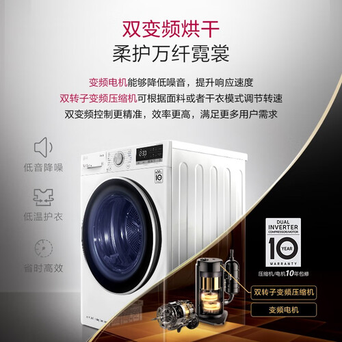 双重变频电机,不仅运行更稳定、干衣更快速,而且长时间工作更节能省电。一键自清洁功能保持内筒洁净,不造成二次污染。