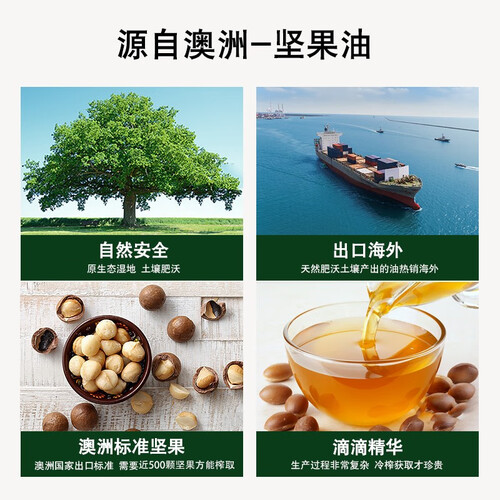 富含源自澳洲的坚果油和甜杏仁油成分,能够滋养润泽发丝,同时免洗,懒人福音。