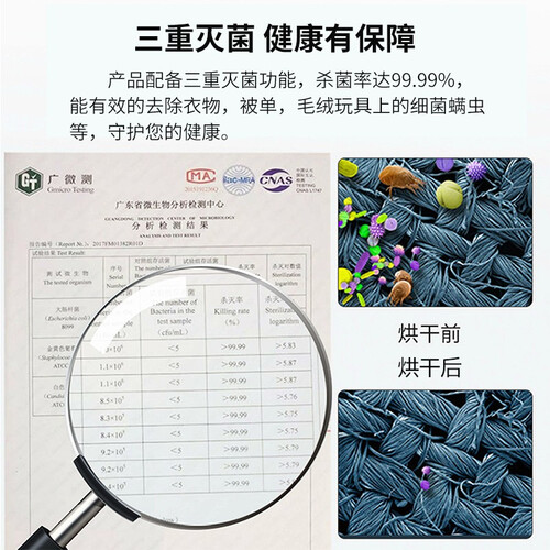 采用微电脑控制,在烘干衣物的时候控温更精准,在快速干衣的同时也能保持衣物的柔软。垂直挂衣干衣,烘干后无需熨烫就能穿。