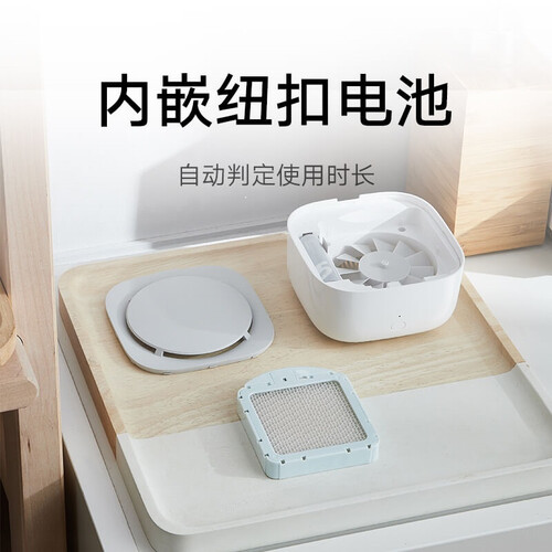 蜂巢式的设计,帮助防蚊剂扩散,提供长时间的防蚊能力。内嵌纽扣电池,可自动判定使用时长,做到长效驱蚊。