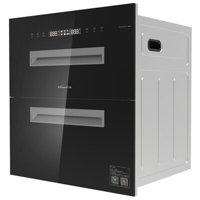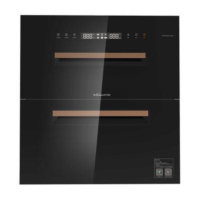 消毒柜容量大可以将碗架整体放入并进行消毒,储存和放置更加便捷,表面采用钢化玻璃面板,清洗更加方便。