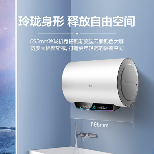 渐变星云紫配色,695mm短巧机身,空间大师,狭小浴室也能用。3300W变频速热,热水即开即来,畅享舒适沐浴时光。