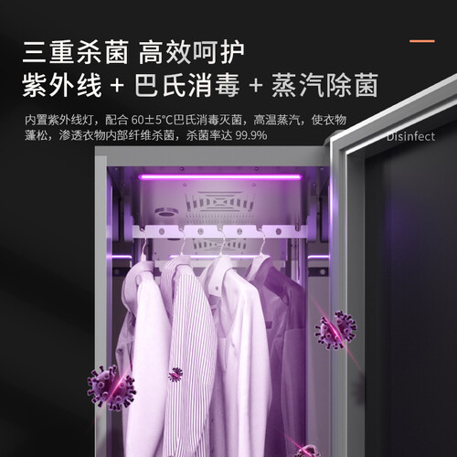 双重净菌,让螨虫无处可逃,呵护家人健康。丝绸母婴、羊毛羽绒、纤维棉麻,不同衣物设置不同模式,每件衣物贴心对待。