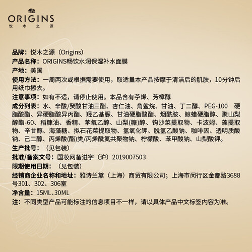 悦木之源 畅饮水润保湿面膜