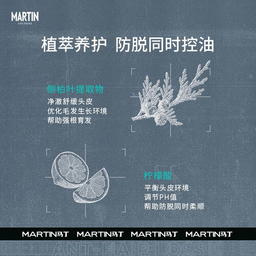 含有侧柏叶、柠檬酸成分,深入滋养头皮,有效改善头皮生态环境,帮助头发强根生发。添加了多功能保持湿剂,令发丝持久润泽。