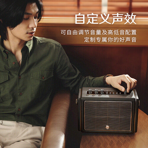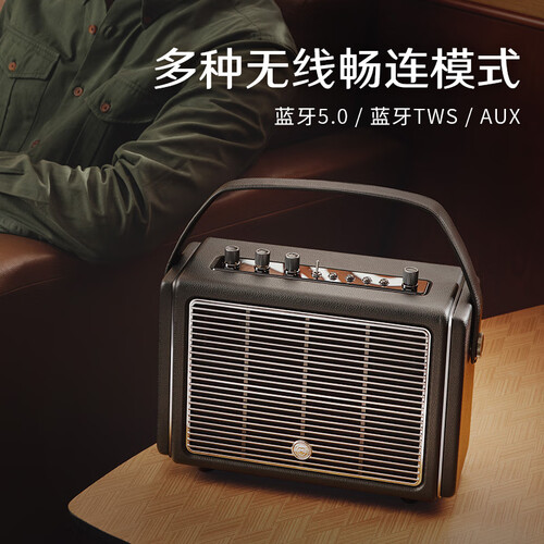 内置强大动力电池运行,声场扬声力度大,享受更带感。支持多设备蓝牙连接,听歌不受限。木质仿真皮外观,奢华有气质。