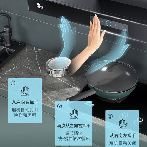 拥有400Pa的大静压,饭点时也能够通畅排烟,拒绝邻居家的油烟倒灌。含有一键爆炒模式,快速增大吸力,避免油烟乱窜。