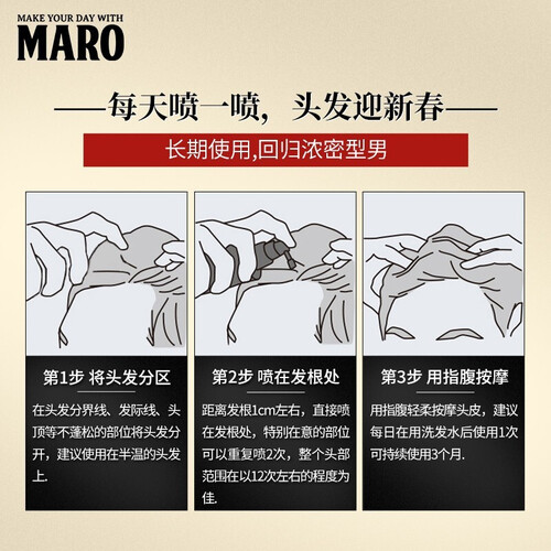 采用草本植物配方整顿头皮环境,为发根注入营养,丰盈发量,拯救后移的发际线。添加蜂王浆、冬虫夏草等提取物,滋养头皮。