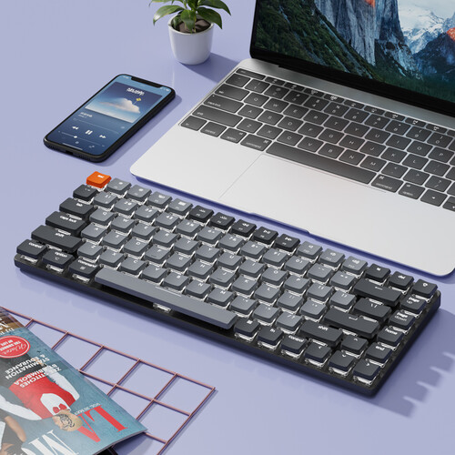支持连接三台设备,以便在不同的设备间自由切换,有效提高工作效率。84键的布局,简洁紧凑,不占用过多桌面空间。