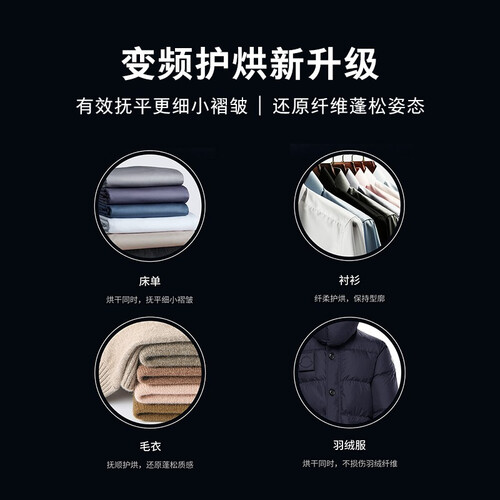 洗烘分离式的设计,专机专用,可以轻松搞定厚重衣物,满足洗护需求。搭配智能变频温控技术,帮助干衣恰到好处,衣物烘干不过烘。