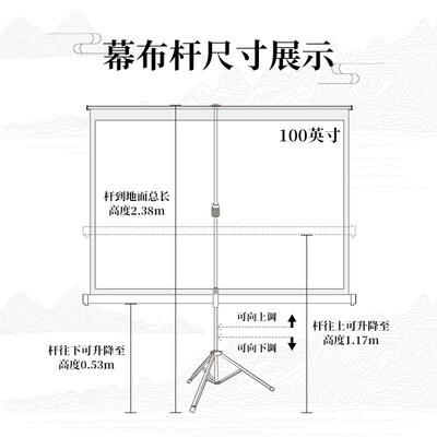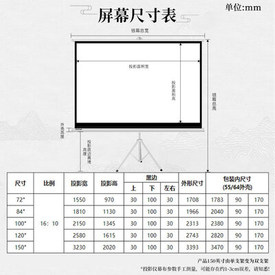 幕布高清成像,自然逼真,清晰锐丽。幕面平整、洁白,大视角带来更为出色的观影效果。收纳方便,轻松携带。