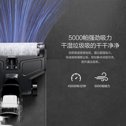 内置独立高转速马达,拥有5KPa强劲大吸力,高效洗刷地板同时还能轻松除去缝隙中的尘垢。自适应变频电机,吸力始终如一。