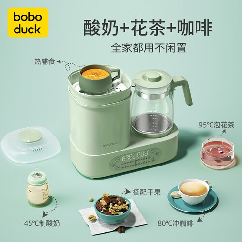 暖奶、热奶器、蒸食、净菌锅等五合一功能,左右分区双分效率,也可独立操作;内藏收纳美学,还妈妈舒适整洁的桌面。